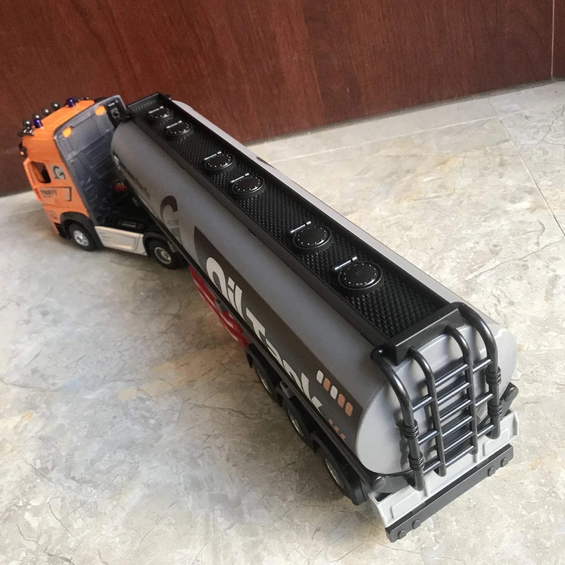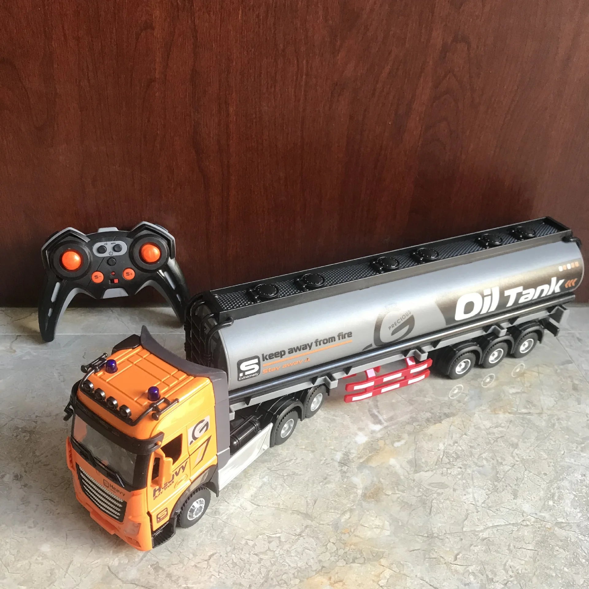 RC Car Big Remote Control Oil Tank Truck 9CH Alloy Electronic Simulation Trailer LED Music RC Container Truck Rechargeable Toy